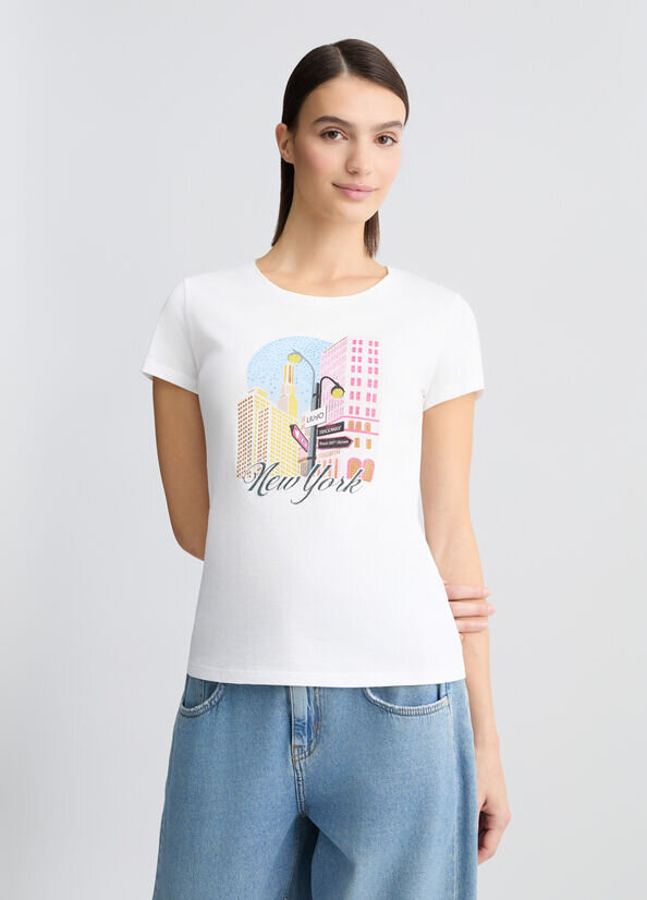 T-shirt con stampa e strass liu jo pe 25 art. wa5362