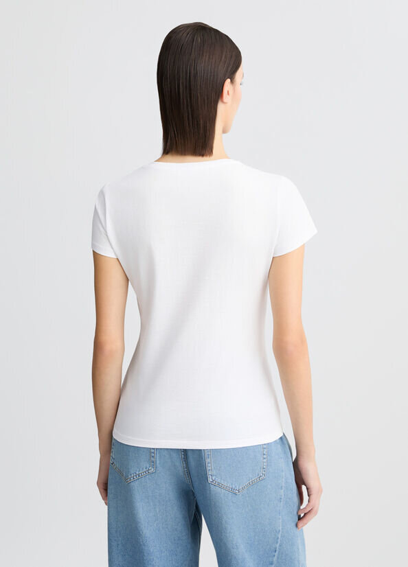 T- shirt in cotone con stampa e strass liu jo pe 25 art. wa5239