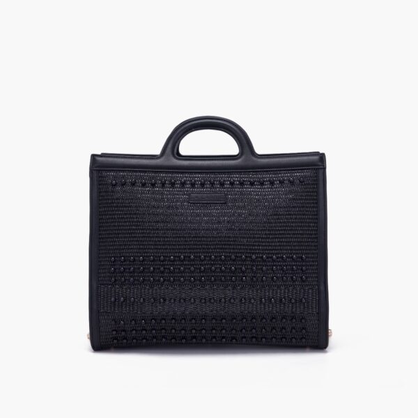 borsa shopping in raffia con perle metalliche in tinta alla borsa e bordi in pu.