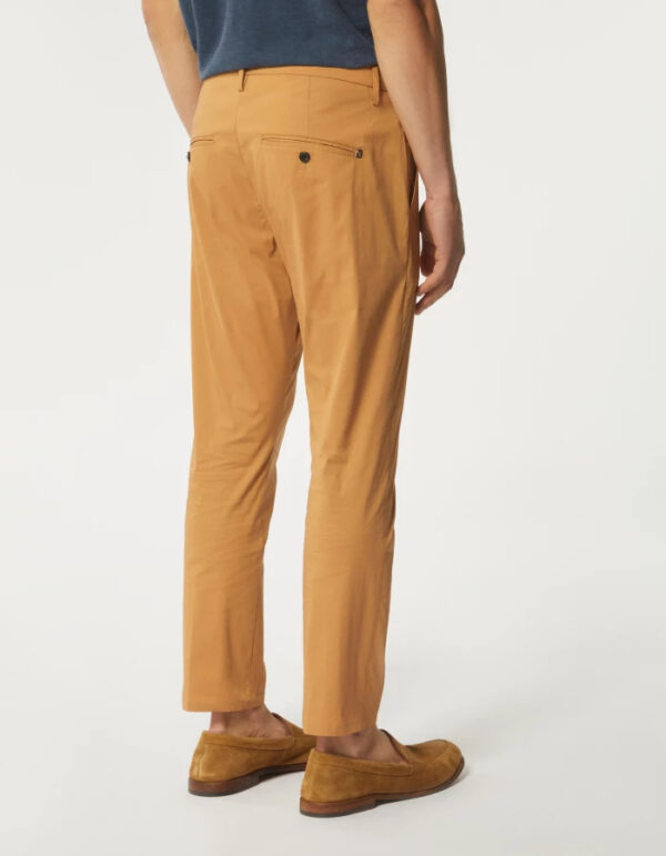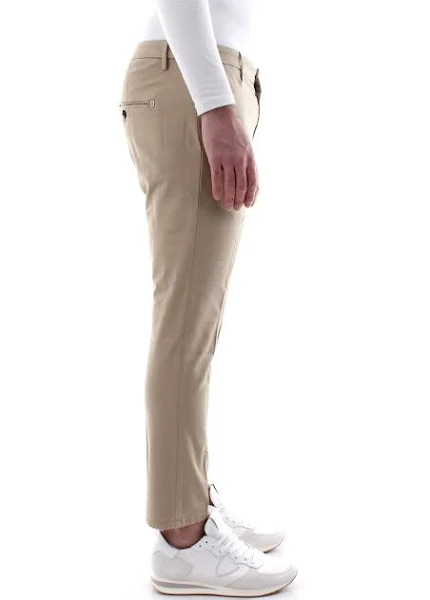Pantaloni Alfredo slim chino, vita bassa, tasche a filetto posteriori, lunghezza 28 inches. Popeline stretch. Logo Dondup. Made in Italy