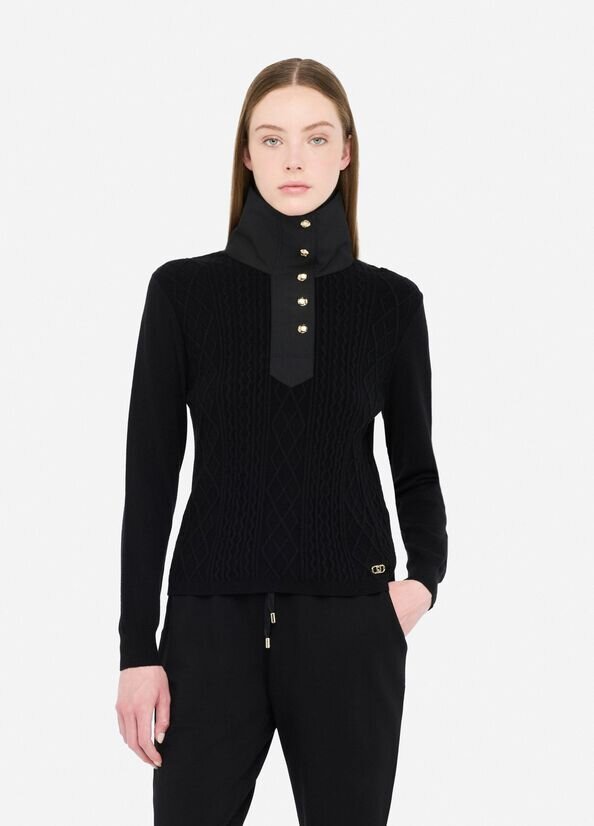 Collo alto con zip e bottoni a pressione