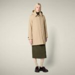 Sfida la pioggia con l'impermeabile donna modello Embie, realizzato in tessuto waterproof con imbottitura animal free in Recycled Plumtech®. Le cuciture nastrate e i bottoni sui polsi offrono protezione extra, mentre il cappuccio rimovibile e la chiusura con zip e bottoni effetto corno uniscono praticità ed eleganza. Due comode tasche in stile trench e il logo in rilievo sulla manica completano il design.
