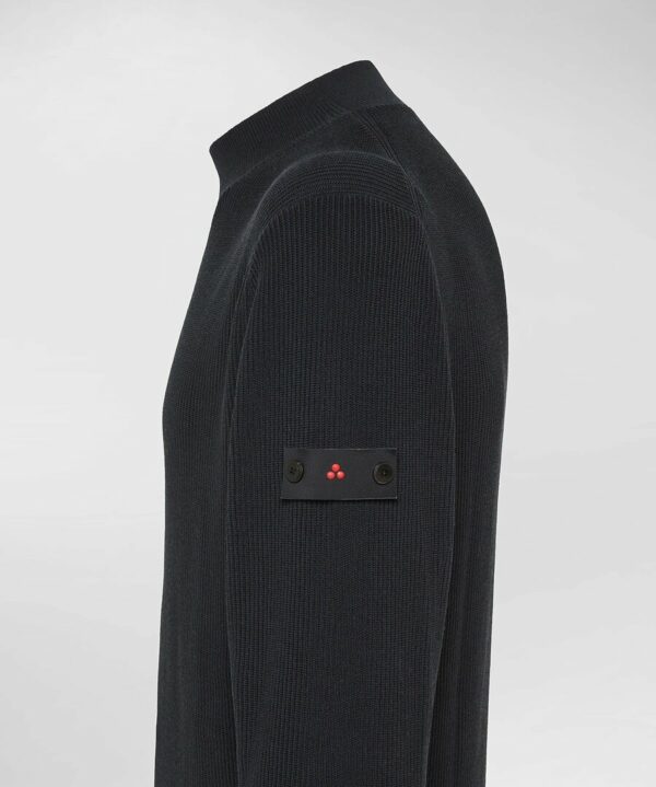 Maglia a lupetto in tricot di cotone, lavorata a costa inglese. La maglia inglese, nota anche come "fisherman's rib", è una tecnica di lavorazione che crea un tessuto più spesso e più elastico rispetto alla maglia standard, con un raffinato effetto tridimensionale. Il design essenziale è completato da collo, polsini e fondo a coste, per una vestibilità confortevole e definita. La personalizzazione con logo Peuterey trilogy, simbolo iconico del brand, è applicata con discrezione sul braccio sinistro con due bottoncini. Un capo classico ed versatile, impreziosito dalla particolare lavorazione del tessuto, perfetto per arricchire il guardaroba con un tocco di eleganza contemporanea.