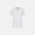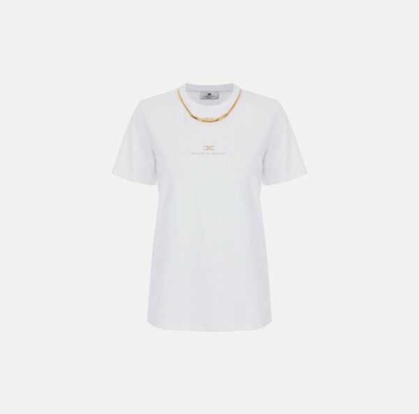 Maglietta a maniche corte in jersey di cotone. È impreziosita dalla collana amovibile con catena, logo centrale ed elementi tubolari in metallo dorato. Il logo a rilievo regala un'ultima nota di luce. Vestibilità regular.