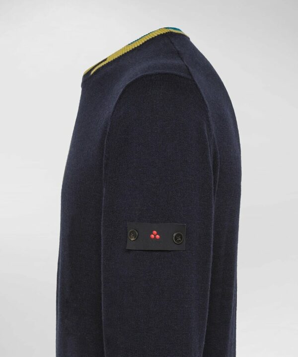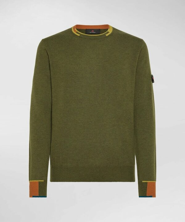 Maglia girocollo in tricot di misto lana e nylon, caratterizzata da dettagli a contrasto su collo, polsini e fondo che ne esaltano il carattere contemporaneo. La costruzione pulita e la palette raffinata la rendono un capo versatile, perfetto per aggiungere un tocco di personalità ai look quotidiani. La personalizzazione con liconico logo Peuterey, applicata sulla manica sinistra, completa il design con un tocco distintivo.