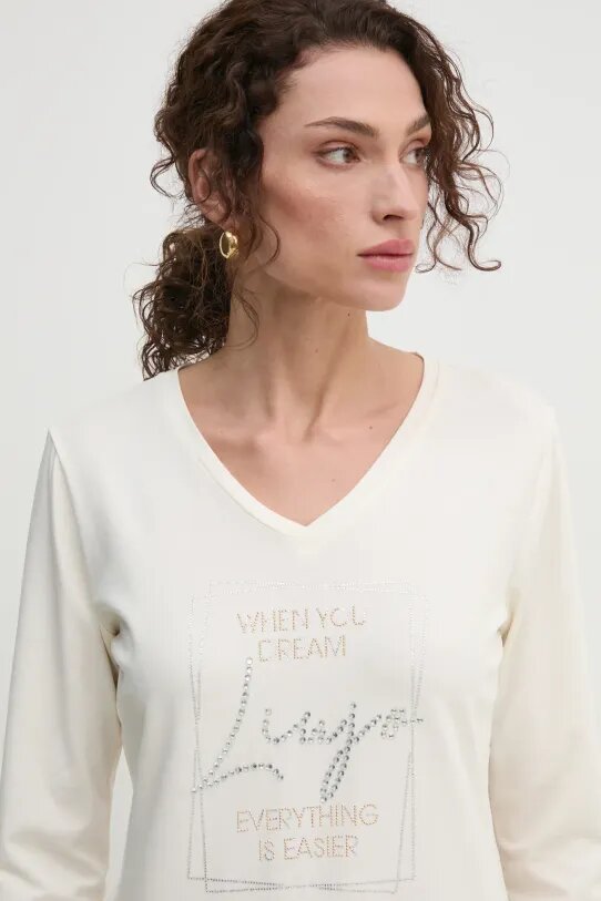 Liu Jo maglia a maniche lunghe realizzata in maglia con applicazione. Il modello realizzato in un tessuto estremamente confortevole ad alta percentuale di cotone.