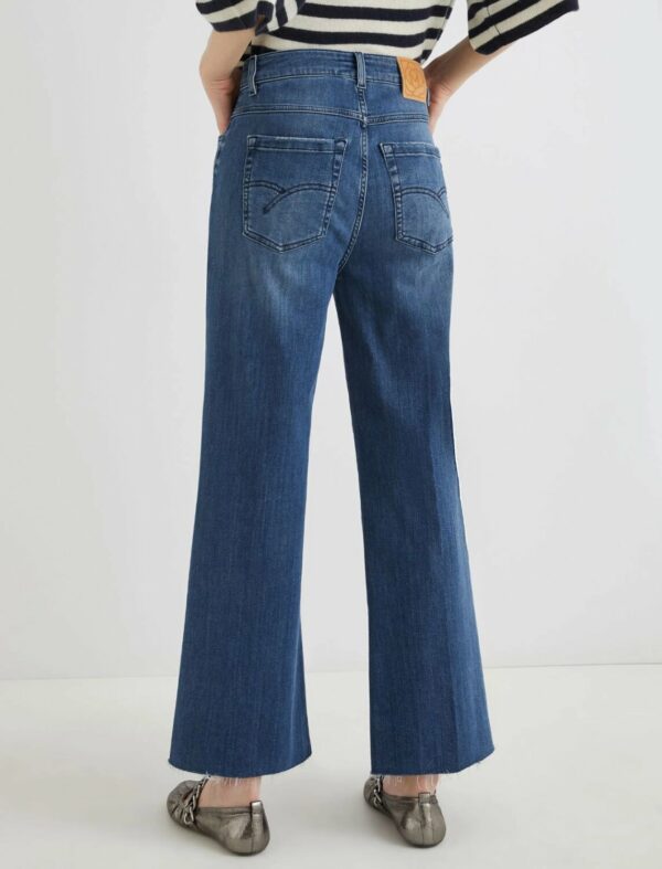 Tutto il fascino del denim, con il comfort di un tessuto soft stretch. Prova questo modello wide leg, con taglio alla caviglia per una silhouette sempre definita.